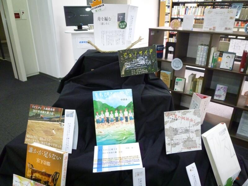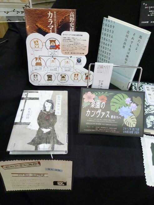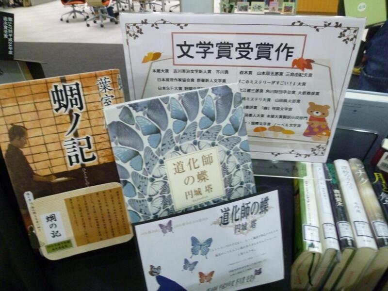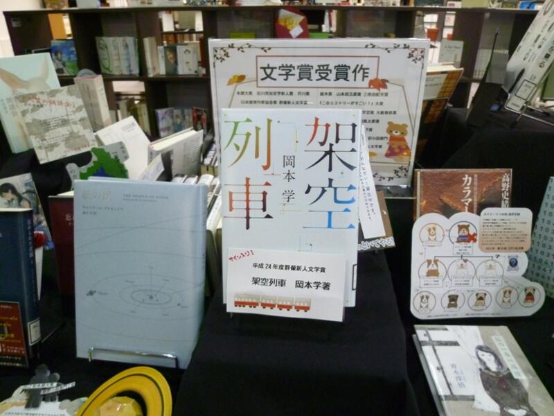 文学賞のコーナーには、さいきん賞をとり話題の作品がずらりと並んでいます。