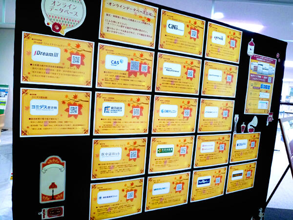 オンラインデータベースやオンラインジャーナルの特徴を展示してあるコーナーもあります。