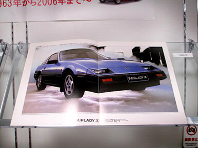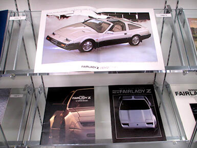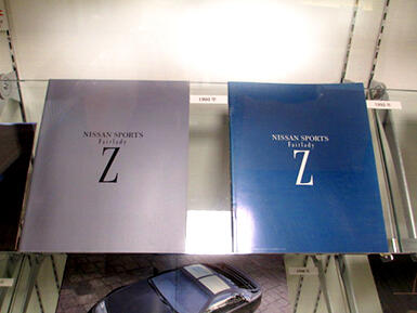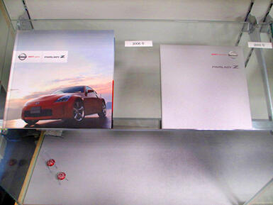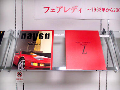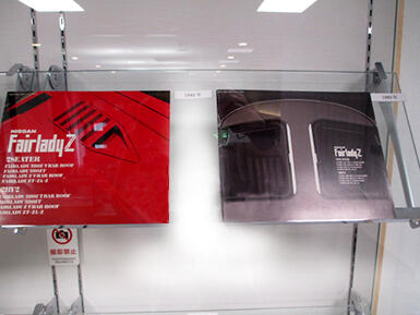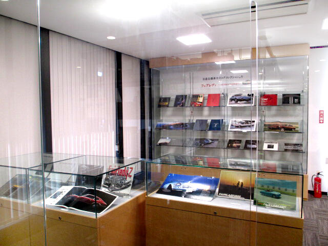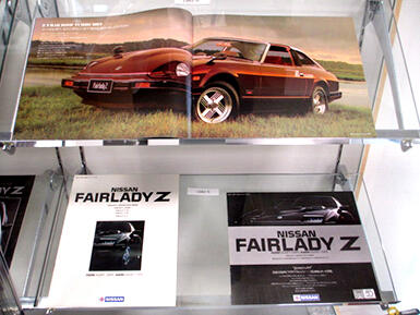 1963年(Datsun)から2006年(Z)までの歴代フェアレディのカタログを展示しています。