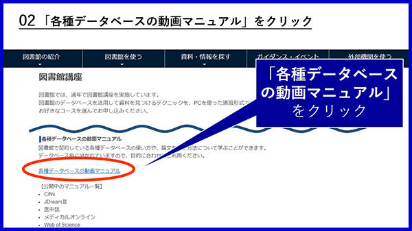 「各種データベースの動画マニュアル」よりご覧になれます。