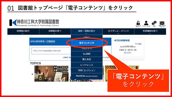 卒業研究はもちろん、授業の課題でも活用できる便利な電子コンテンツをぜひご活用ください!