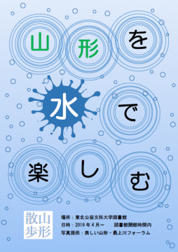 図書館では、旧石器時代から現代まで人々の生活を支えてきた最上川の歴史と、県内の水に関わる観光スポットや自然を紹介する【山形を水で楽しむ展】を開催中です。