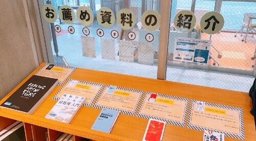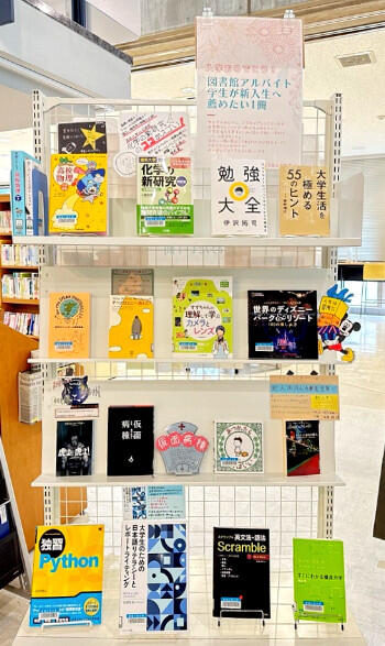 4月に開催した選書イベントで学生が選んだ資料の展示&貸出