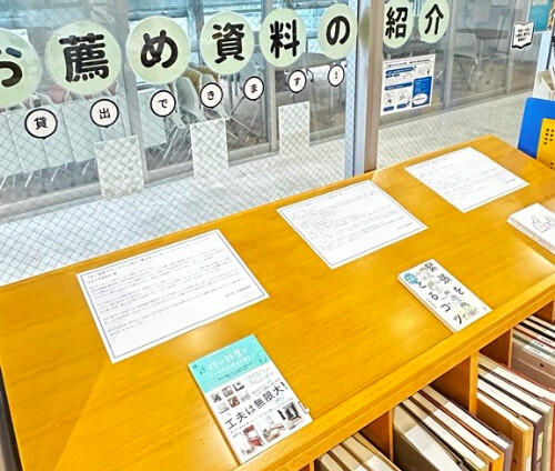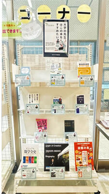 特集本、お薦め本、ともに図書館1F入口ゲート付近に展示してあります。