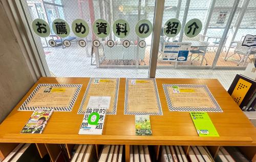 特集本、お薦め本、ともに図書館1F入口ゲート付近に展示してあります。