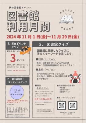 11月4日(火)~図書館1階入り口ゲート付近に展示してあります。