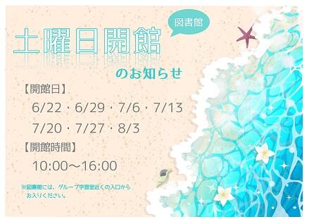 土曜日開館のお知らせ