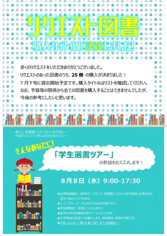 ※勉強や研究などですぐに必要な場合は、OPACの「新規購入依頼」から