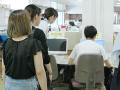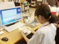 図書館の説明は、図書館のアルバイト学生が担当しました。