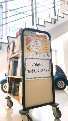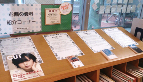 図書館1F入り口ゲート付近に展示してありますので、ご利用ください。