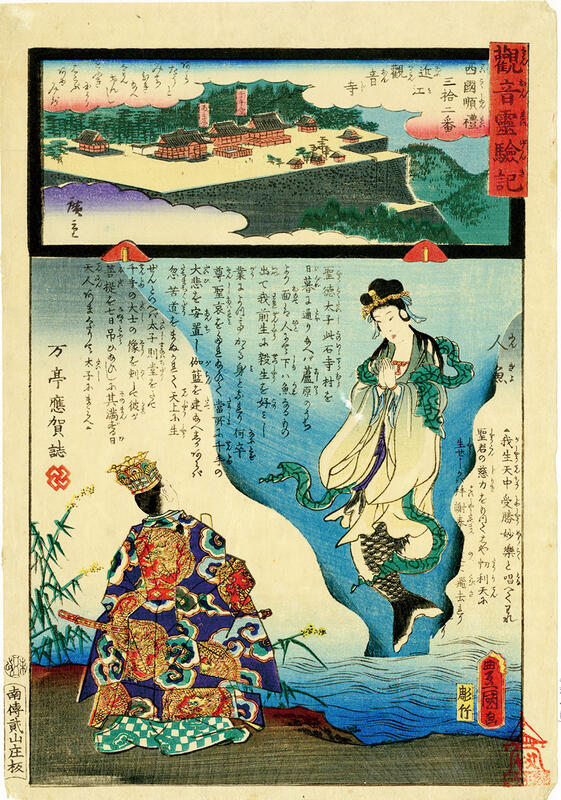 龍谷ミュージアムが主催した「アジアの女神たち」展は、地母神から観音菩薩に至るまで、アジア各地で深く信仰された女神たちの多様な姿を紹介する展示でした。図書館では、所蔵する資料の一部を龍谷ミュージアムに出陳した他、今回の連携展示では、貴重資料である「観音霊験記」をはじめとする古典籍資料とアジアの女神たちに関する図書を展示いたしました。