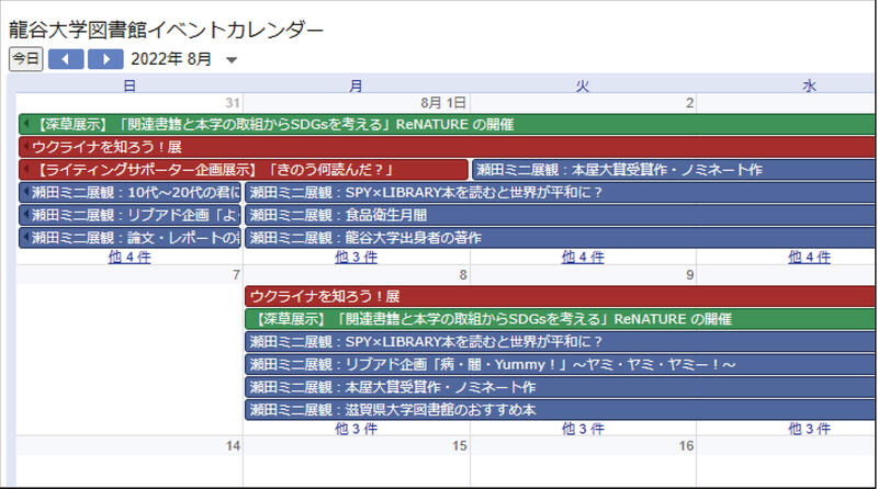 図書館の展観等のイベントは図書館サイトでご案内するとともにカレンダー形式でも提供しています。図をクリックしてみてください。