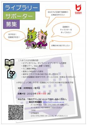 私たちライブラリーサポーターは、龍谷大学の深草図書館が拠点です。図書館の魅力を発信し、学生や大学関係者に、より一層図書館を利用していただくことを目的に掲げて、日々マイペースに活動をしています。定期的にミーティングを実施し、季節ごとの本の展示や図書館の選書への参加、外部の方と協力してビブリオバトルの運営をお手伝いさせていただきました。本について新しい知識や発見を得られ、楽しい刺激を受けられる活動です。