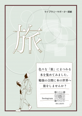 ライブラリーサポーターによる「旅」をテーマとした展観が深草図書館1階にて行われました。今回は、6名のサポーターがそれぞれ「旅」にまつわる本を提案し、最終的には15冊の本が集まりました。また、折り紙等を用いて季節にちなんだ飾りを作成するといったことも行いました。展観の準備に参加したサポーターは、本や飾りの配置をどうするかについて悩みに悩みながら作業をしており、唯一その点が少し大変そうでしたが、最終的には素敵な空間を作ることができたと思います。