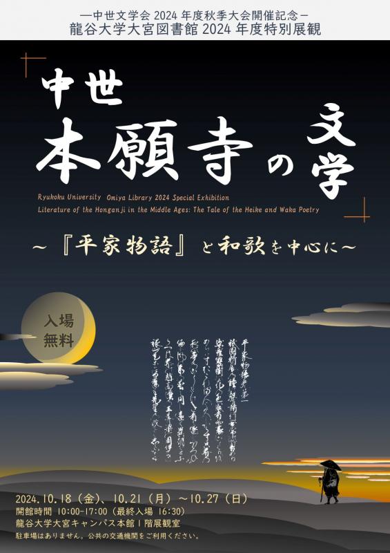 ちなみに、2024年度秋(10月18日(金)、10月21日(月)~27日(日)期間予定)に、大宮キャンパス本館展示室で開催が予定されている大宮図書館特別展観では、「中世本願寺の文学―『平家物語』と和歌を中心に―」というテーマで開催する予定です。『平家物語』を中心に、和歌に関する古典籍を展示する予定ですので、この機会に是非ご覧ください。