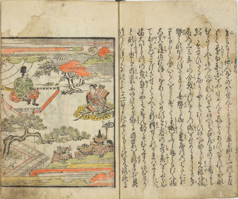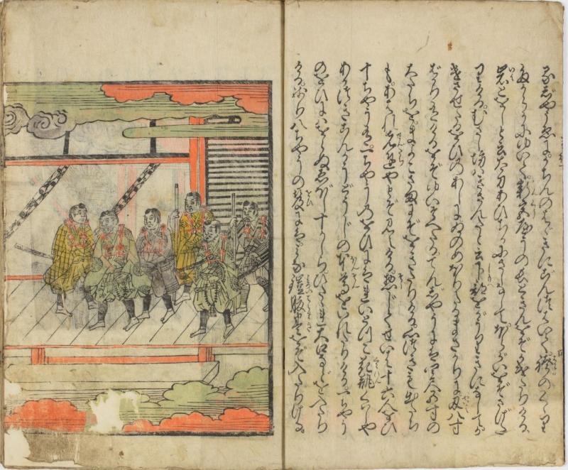 今回、紹介した『義経記』は、大宮図書館が2023年度に蒐集したものです。江戸時代初期の寛永12(1635)年に刊行された丹緑本です。丹緑本とは、墨刷りの版本の挿絵に筆彩を施した手彩色本のことです。『義経記』には全部で65図に及ぶ挿絵があり、それぞれに筆彩が施されていることから、丹緑本として極めて珍しいものとされています。