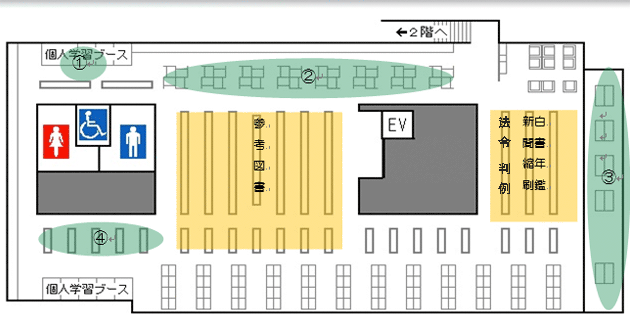 資料を閲覧したり、ノートPCを持ち込んで学習したりできる、もっとも一般的なフロアです。