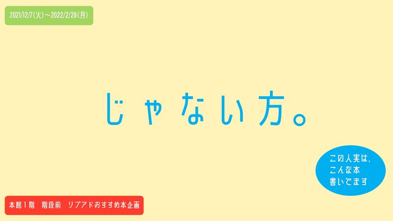 瀬田図書館本館1階にてリブアド企画「〇〇じゃない方。」~この人実はこんな本書いてます~と題した展観を実施します。