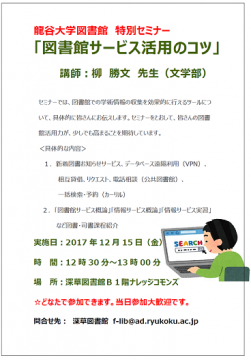 龍谷大学図書館 特別セミナー「図書館サービス活用のコツ」を開催します。