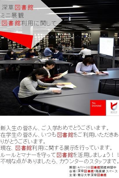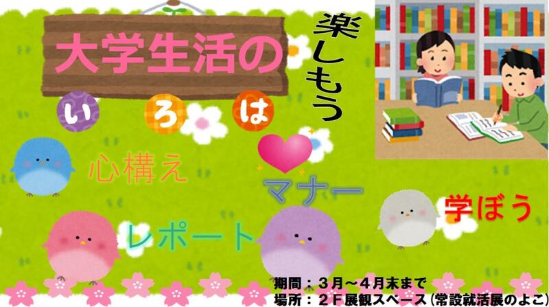 【深草ミニ展観】「桜の花びら展」「大学生活のいろは展」「図書館利用に関する展示」