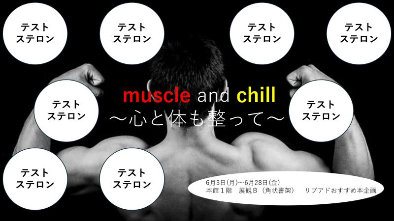 本館1階おすすめ本コーナー、6月のテーマは「muscle and chill ~心も体も整って~」です。夏を迎える準備はできていますか。私たち大学生は、学生の中で1番休みが多いです。自由な時間がある今だからこそできること、その1つに筋肉トレーニング、略して筋トレを紹介します。自分の体に満足していない方、誰かを振り向かせたい方、暇を持て余している方、そんな方々にうってつけの本を選出してみました。ただダラダラとするのではなく、筋肉という自信をあなたは身につけてみませんか。