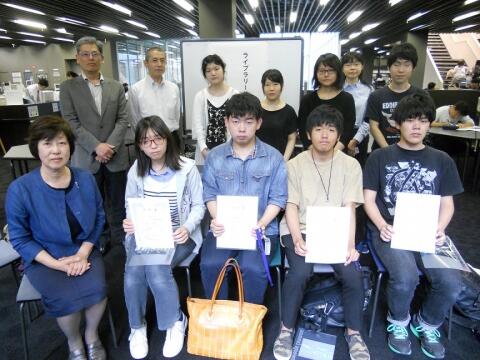 深草図書館では、2017年6月8日(木)にライブラリーサポーターの任命式を行いました。今年度は新しく8名の方の応募がありました。