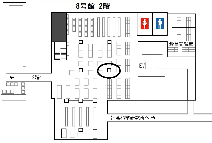 この度、深草図書館8号館2階にコピー機をコピー機を設置しました。下図のとおり設置しておりますので、ご利用ください。 なお、コピーカードにて使用できるコピー機についても、設置を検討していますので、もうしばらくお待ちください。