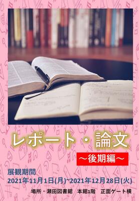 レポート・論文の書き方、まとめ方に悩んでいませんか?資料の検索の仕方、文章の表現力向上から具体的なレポート・論文の書き方、文献の引用の仕方、Word、Excelの使いこなし方まで、学生の皆様のレポート・論文作成の参考となる資料をご紹介します。展示している資料はすべて貸出可能ですので、この機会に是非ご利用下さい。