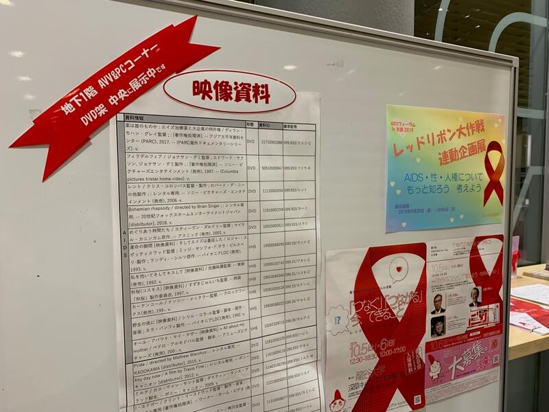 深草図書館1Fおよび地下1階AVコーナーでミニ展観「AIDS・性・人権についてもっと知ろう 考えよう」を10月6日まで行っています。
