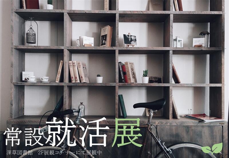 隔月で変更する展観には、就職活動に関係のあるテーマを決め、それに沿った資料を選び、2F展観スペースにて展示を行っております。