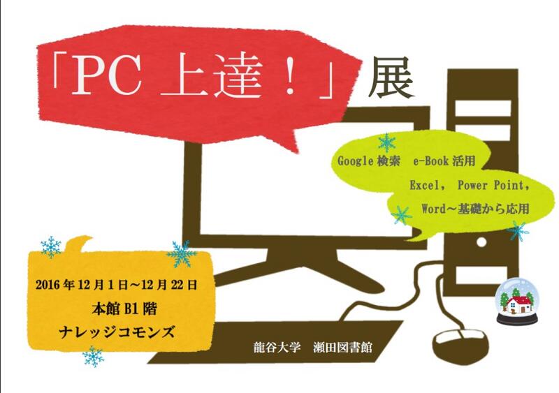 そこで、12月の展観では「PC上達!」展と題し、Excel、Word、PowerPointの基礎から応用、Google検索など、数ある資料の中から集め、下記のとおり展示します。