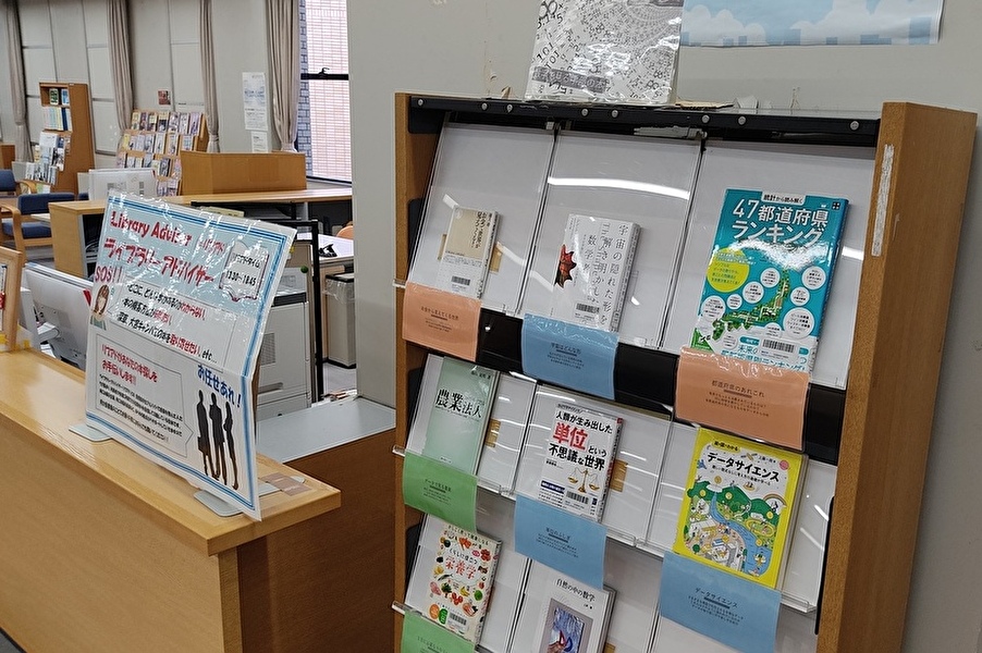 ライブラリーアドバイザーは利用者のお困りごとをサポートをする仕事をしたり、文庫本やDVD、おすすめ本等のコーナーづくりを担当していたり幅広い業務を行っています。