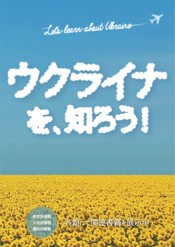 図書館では、ウクライナの理解と支援に役立てていただけますよう、関連の書籍等を2022年6月1日より、3館が連携して展示しております。