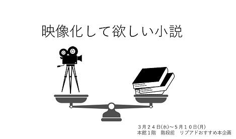 瀬田図書館本館一階にて「映像化してほしい小説」と題した展観を行います。