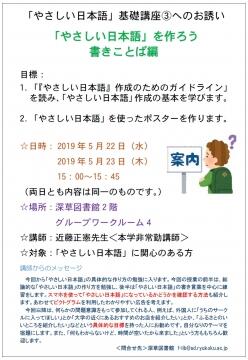 「やさしい日本語」基礎講座③を下記のとおり開催します。