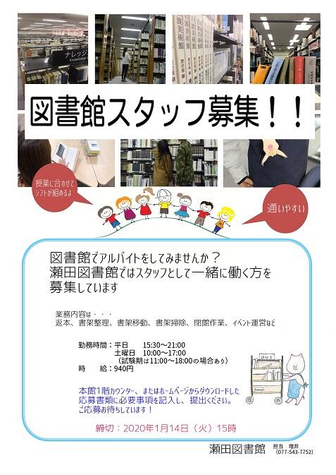 瀬田図書館では、スタッフとして一緒に働く方を募集しています。
