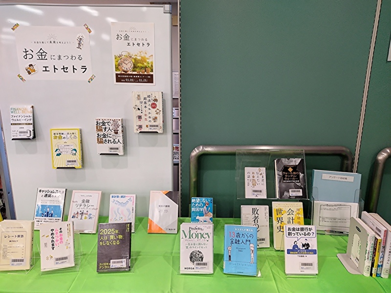 生活から切っても切り離せないもの、それがお金。年末年始は何かとお金に触れる機会が多いものです。年末調整や年末年始の買い物、人によってはお年玉をあげる側の方もいたかもしれませんね。今回の展観の裏テーマは「お金を通じて未来を考えよう!」です。お金の使い方・増やし方に関する本だけではなく、貧困問題についての本や、知っておくと安心できる経済や金融の仕組みを紐解く本などを集めました。読むとお金に対する姿勢が変わるかもしれません。さぁ新しい1年のはじまり、これからあなたはどのようにお金を使っていきますか?