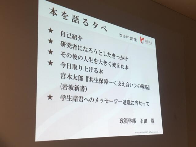 今回のスピーカ―は政策学部の石田徹先生でした。取り上げられた本は、