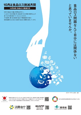 10月は食品ロス削減月間です。食品ロスとは、作り過ぎ、売れ残り、食べ残し、賞味期限切れなど、食べられるのに廃棄される食品のことです。日本の食品ロス発生量は農林水産省サイトによると令和2年度推計で約522万トン(うち家庭から約247万トン)にも上ります。あまりに数字が大きすぎてイメージ出来ませんが、1人当たりに換算すると毎日お茶碗1杯分の食品を捨てていることになります。これでも推計を開始した平成24年度以降で最少だそうです。世界に目を向けると食糧不足の発展途上国へ支援される食料は年間約420万トン(2020年)。飢えに苦しむ人々がいる一方で、何ともったいないことでしょうか。また日本の食料自給率はたった38%に過ぎません(カロリーベース令和3年度)。大量の食料を外国から輸入しているにも関わらず、大量の食品を捨てているのです。そして捨てられた食品はゴミとなり焼却処分され、二酸化炭素排出の要因ともなります。食品ロスについて、一人ひとりが自覚し、取り組むことが重要です。