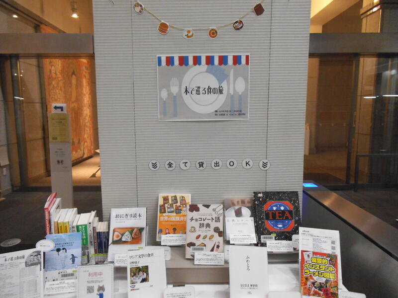 今回のテーマは「本で巡る食の旅」です。日本全国のおいしいものや世界各国の地域に根付いた食事、さらに南極でのご飯について書かれた本も展示しています。