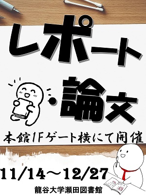 「レポートとは何か?」「卒業論文とは何か?」「どう書けばいいのか?」と悩まれている方にぴったりの展観を図書館にて行っております。全学年の皆様が興味を持っていただける資料を多く展示しておりますので、ぜひご利用ください。