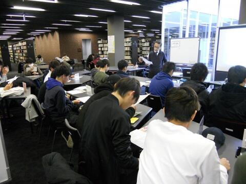先ず公開講座「読書の楽しみ」は、経済学部の新豊先生の2回生の演習のクラス生に参加頂き、図書館としては初めての公開ゼミの開催となりました。和田さんは、読売新聞社での自身の記者歴とともに、活字文化推進会議担当となって以降の様々な活動についても詳細に紹介していただきました。特に、著名な作家や芸能人を講師に招いた読書教養講座や活字文化公開講座の実現に関連した苦労話の逸話には、参加した学生も高い関心を持ったように思われました。和田さんからは、それぞれの学生に対して、読書歴などの質問もなされ、まさに双方向のやりとりがなされました。講座の後には、和田さんから「読書の達人と言える学生さんもおられましたよ」との感想も頂戴し、本学学生の読書力の向上に期待が持てる機会となりました。