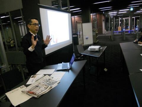 講師の和田浩二氏は、「活字文化推進会議」の事務局も担当されています。活字文化推進会議は、読売新聞社が出版関係業界と協力して発足させたもので、本や新聞などの活字文化を守り育てるために、様々な事業を展開されています。本学図書館が3年前から参加している「全国大学ビブリオバトル」、また本学図書館が今年度から京都府、滋賀県の各会場を立ち上げた「全国高等学校ビブリオバトル」も、活字文化推進会議のプロジェクトとして行われているものです。