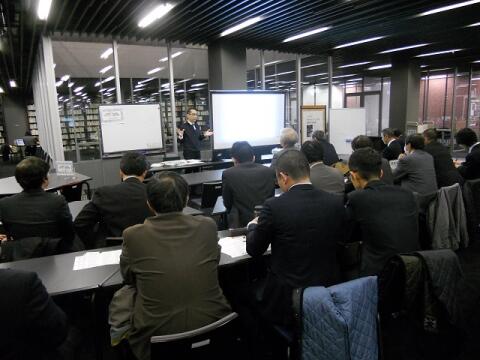 続いての公開講演会「アクティブラーニングを推進する図書館」では、アクティブラーニングと大学図書館との関わりについて、他大学の具体的な事例(立教大学、城西大学など)も交えた紹介が行われました。アクティブラーニングは中教審の学士力答申以降に広く認識されたものですが、それは大学教育の改善を伴うものであるとともに、大学図書館のあり方にも大きな変化を要求するものでした。具体的には、ラーニングコモンズの設置に代表されるように図書館における学習空間のあり方が再認識されました。本学図書館でも、各館にラーニングコモンズが設置されたことは、そのような脈略によるものです。和田氏も、今後は整備されたラーニングコモンズを活用した学習支援サービスを図書館が積極的に行っていくことを強調されていました。また和田氏は、今後の大学入試改革では、「表現力」「思考力」「判断力」の三要素が重要視されることからしても、ますます読書を通した思考力や想像力の涵養が求められており、大学図書館の存在意義はいよいよ高まるとの指摘をいただきました。「大学図書館よ、もっとアクティブに」との締めくくりの言葉も印象的でした。なお公開講演会には、安藤文学部長や野間経営学部長の大学執行部も参加いただき、大学図書館に課せられた課題の重要性をあらためて共有して頂ける機会ともなりました。