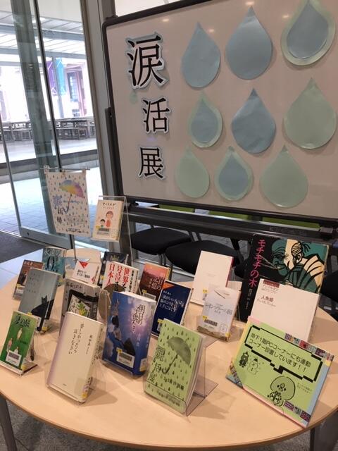 深草図書館では、悲しみや嬉しさがこみあげる感動的な小説のほか、泣くことの心理的効果を探究する資料を集め、1階では、本の資料。地下1AVコーナーでは、視聴覚資料を展示します。
