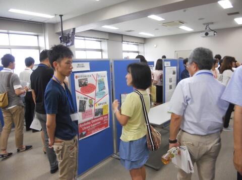ポスターセッションでは、深草、瀬田のライブラリーサポーターが、これまで行ってきたビブリオバトルや展覧企画、留学生との交流などの活動報告を行い、フロアからも多くの質疑を受けました。