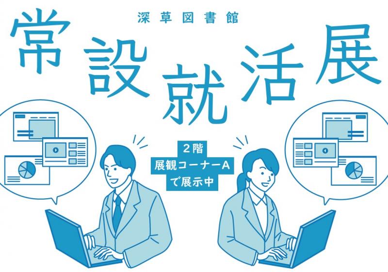 就職活動時に進歩状況により必要となる就職関連の資料を分野ごとに収集・展示し来館者自身の状況や目的に合わせて手に取りやすい展観にしました。