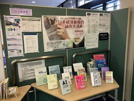 また、瀬田図書館では、今回の「日本経済新聞の読み方講座」に関連する図書を本館1階階段前に展示しています。今回展示している図書は、全て貸出が可能ですので、是非ご利用ください。