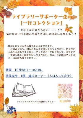 深草図書館では、ライブラリ―サポーター企画「一行コレクション」を開催中です。