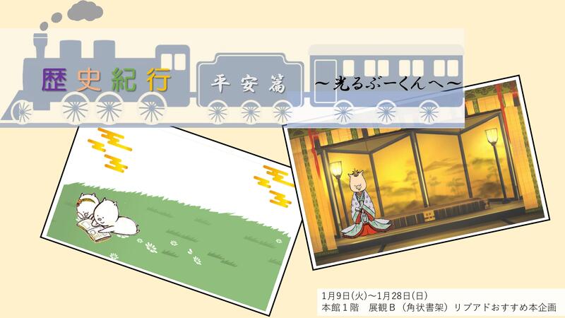 本館1階おすすめ本コーナーでは、「歴史紀行 平安編 ~光るぶーくんへ~」と題して、歴史についての特集をお届けします。